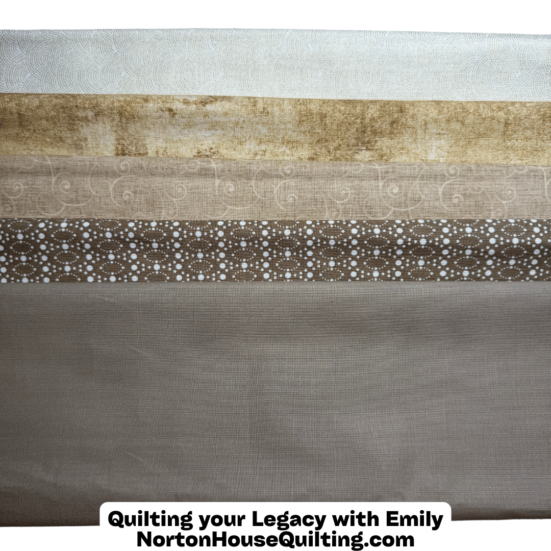 Say hello to Cocoa & Clay, a rich and cozy bundle of brown tonal fabrics that bring warmth, depth, and natural charm to your quilting projects. This 5-piece fat quarter set includes a lovely mix of caramels, chocolates, mochas, and sandy taupes—perfect for grounding bold prints or creating a beautiful, earthy palette all on its own.