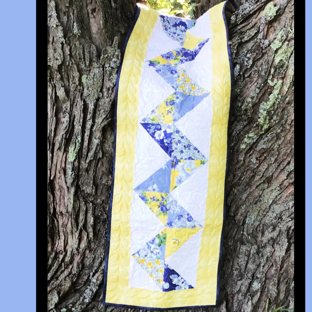 Sunny Day by Villa Rosa Designs is a cheerful, slim runner pattern using a mix of 5″ charm print squares and white charm squares with a simple border and binding. It’s perfect for a table runner, wall accent, or any spot where you want a pop of brightness.