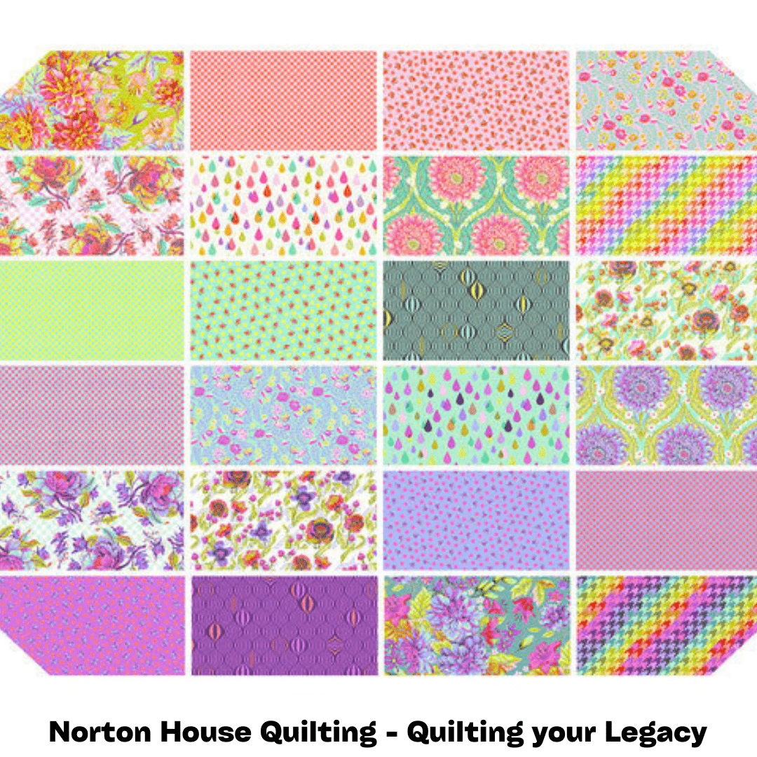 Introducing Untamed: where florals finally take the spotlight! After years of using flowers as accents, Tula Pink has paired them with small geometric prints to create vibrant patterns that truly shine. Think checkered peonies, houndstooth latticework, and neon highlights that add a magical glow. These fabrics are perfect on their own or combined with past collections. Pair them with True Colors to experience Untamed to its fullest!