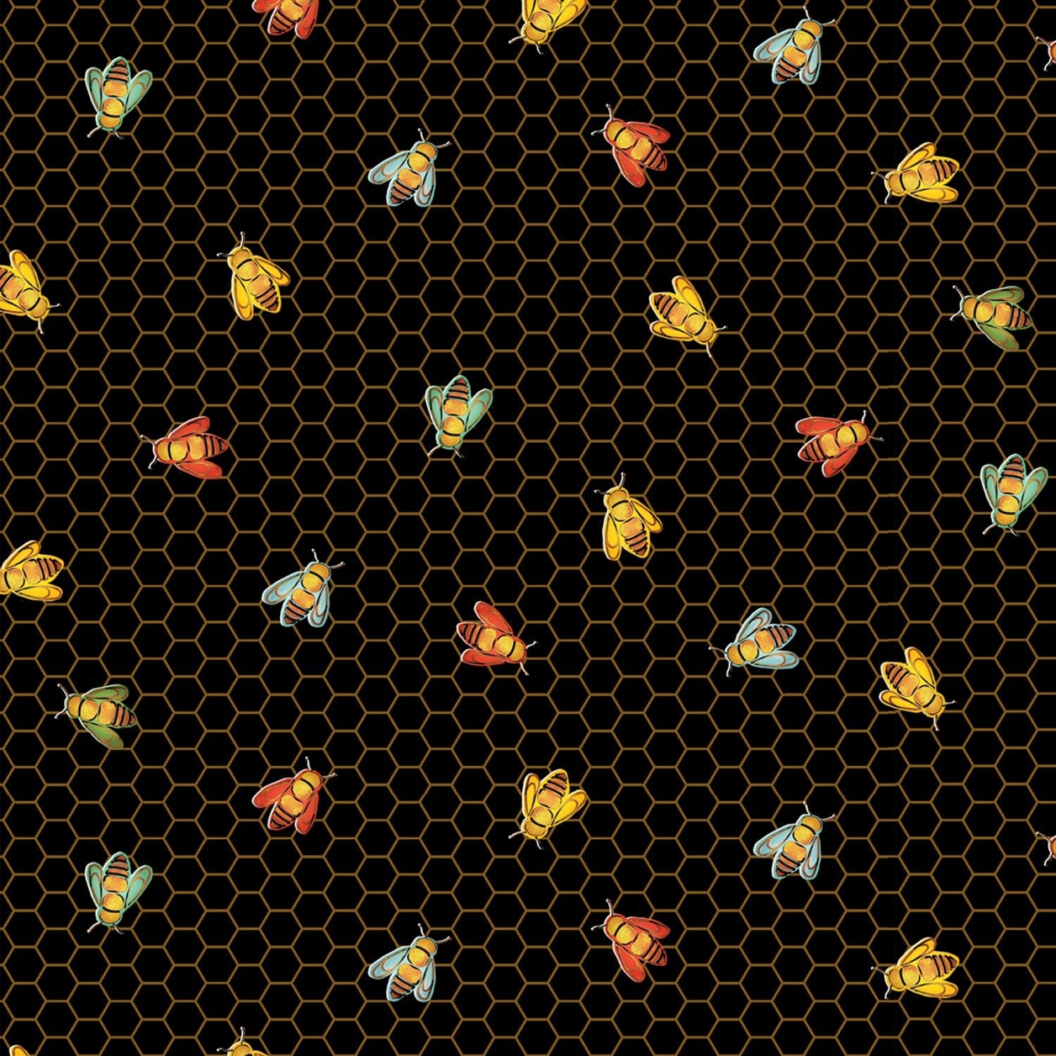 💥 Poppy Days - Black Bees on Honeycomb - 5415-99 - Studio E - Flower Fabrics